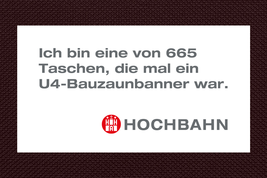 Wir branden Ihre Upcycling-Taschen in authentischer Weise und legen den Fokus darauf, dass jede Tasche durch den individuellen Zuschnitt des Ausgangsmaterials ein Unikat ist. Wir entwerfen ein Digitaldrucklogo, das fotorealistische Elemente (bspw. ein Bild des Riesenposters), Texte und Logos enthalten kann.